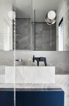 Making a bold statement from the outset, the curved double-height masonry form signals a clear path of entry to the home, ushering movement along the organic form to the front door. Both masculine and confident in its presence among the existing streetscape, the formal approach of Toorak House 2 captures the personalities of those living within, whilst also carving out a distinctive identity of its own.